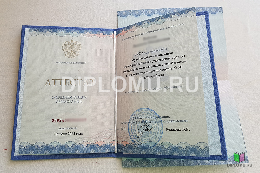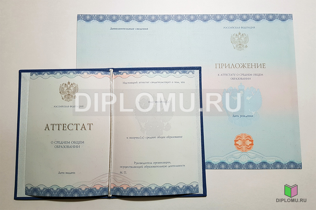 - Комплект: Аттестат + твёрдая обложка + приложение